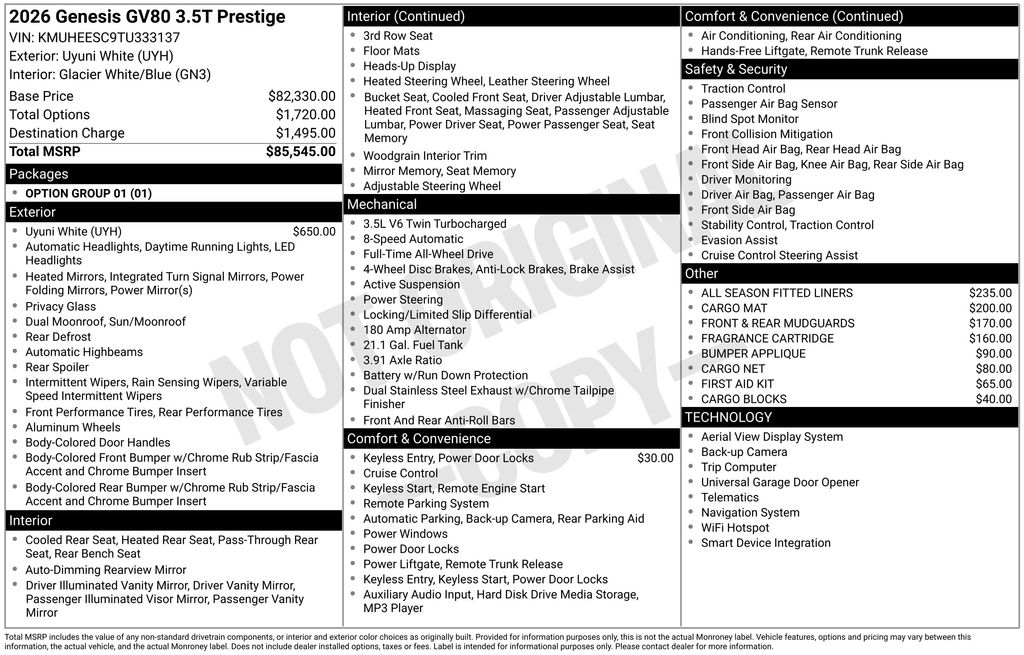 2026 GV80 3.5T Prestige AWD
