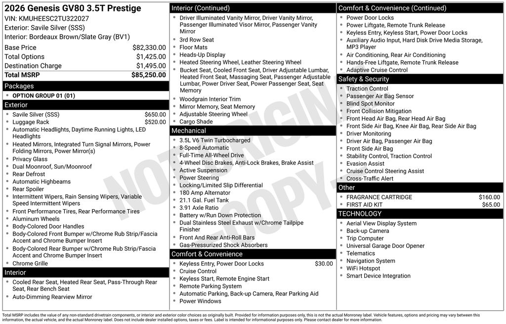 2026 GV80 3.5T Prestige AWD