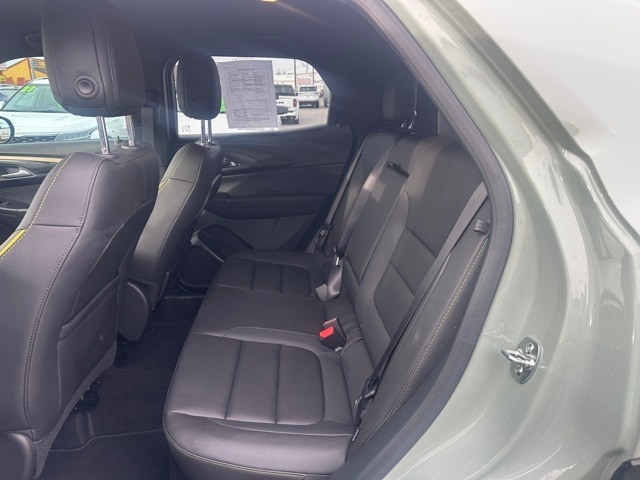 26/29 City/Highway MPG Odometer is 11910 miles below market average! NON SMOKER, REAR CAMERA, APPLE CARPLAY/ANDROID AUTO, BLUETOOTH, 1 Type-A and 1 Type-C USB Charging-Only Ports, 1 Type-A and 1 Type-C USB Ports, 120-Volt Power Outlet, 2-Way Power Driver Lumbar Seat Adjuster, 3.17 Final Drive Axle Ratio, 4-Way Manual Front Passenger Seat Adjuster, 4-Wheel Disc Brakes, 6 Speakers, 6-Speaker Audio System Feature with Amplifier, 8-Way Power Driver Seat Adjuster, ABS brakes, Air Conditioning, Alloy wheels, AM/FM radio: SiriusXM, Auto High-beam Headlights, Brake assist, Bumpers: body-color, Cabin Humidity Sensor, Compass, Convenience Package, Delay-off headlights, Driver and Front Passenger Illuminated Vanity Mirrors, Driver Confidence Package, Driver door bin, Driver vanity mirror, Dual front impact airbags, Dual front side impact airbags, Electronic Stability Control, Emergency communication system: OnStar and Chevrolet connected services capable, Evotex Seat Trim, Exterior Parking Camera Rear, Flat-Folding Front Passenger Seatback, Front anti-roll bar, Front Bucket Seats, Front Center Armrest, Front License Plate Bracket, Front reading lights, Front wheel independent suspension, Fully automatic headlights, Hands Free Power Programmable Liftgate, Heated door mirrors, Heated Driver and Front Passenger Seats, Heated front seats, Heated steering wheel, Illuminated entry, Inside Rear-View Auto-Dimming Mirror, Knee airbag, Lane Change Alert with Side Blind Zone Alert, Low tire pressure warning, Occupant sensing airbag, Overhead airbag, Overhead console, Panic alarm, Passenger door bin, Passenger vanity mirror, Power door mirrors, Power driver seat, Power steering, Power windows, Preferred Equipment Group 1SA, Radio data system, Radio: AM/FM Stereo Audio System, Rear Cross Traffic Alert, Rear Park Assist, Rear seat center armrest, Rear side impact airbag, Rear window defroster, Rear window wiper, Remote keyless entry, Ride and Handling Suspension, Security system, Single-Zone Automatic Climate Control, SiriusXM Trial Subscription, Speed control, Split folding rear seat, Spoiler, Steering wheel mounted audio controls, Summit White Two-Tone Roof, Tachometer, Telescoping steering wheel, Tilt steering wheel, Traction control, Trip computer, Variably intermittent wipers, Wheels: 17" High Gloss Black Machined Aluminum, Wireless Apple CarPlay/Android Auto, Wireless Charging. Cacti Green 1.3L I3 Turbocharged DOHC 12V LEV3-SULEV30 155hp 9-Speed Automatic AWD