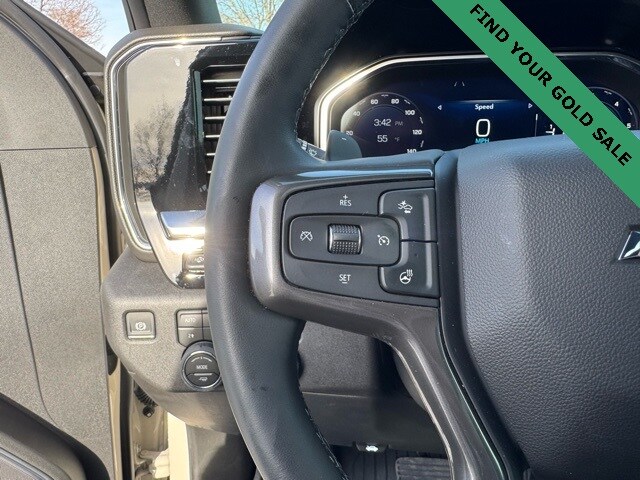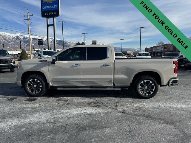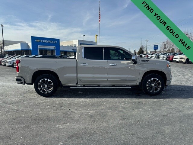 Finished in White Sands, this High Country stands out with a commanding grille, LED lighting, exclusive High Country badging, and a refined, upscale presence. Inside, enjoy leather-appointed seating, heated and ventilated front seats, large touchscreen with Google built-in, Bose® premium audio, advanced trailering technology, and Chevy Safety Assist features.