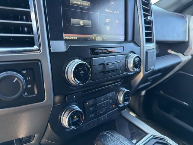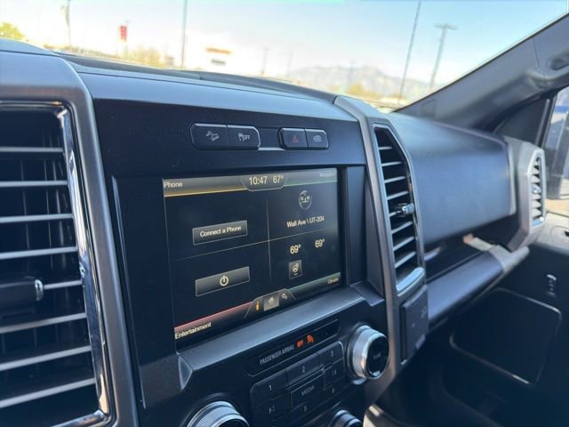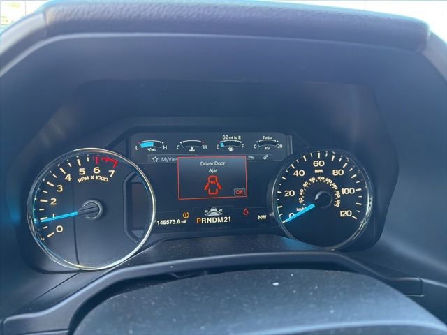 Exterior features like the chrome bumpers, power-folding mirrors, and 20-inch polished aluminum wheels give this F-150 a commanding presence on the road. The LED headlights and fog lights ensure excellent visibility, while the rain-sensing wipers keep you driving safely in any weather.