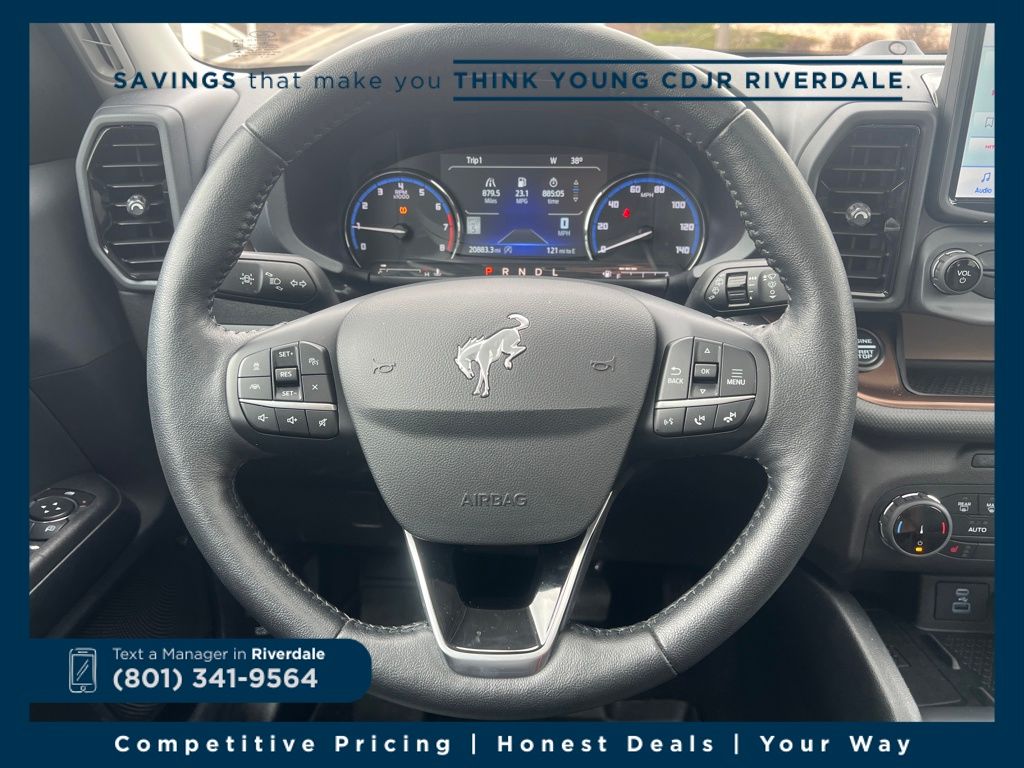 The spacious and well-appointed interior of the Bronco Sport Outer Banks is designed with your comfort and convenience in mind. Leather-trimmed heated sport contour bucket seats, a heated steering wheel, and dual-zone automatic climate control ensure a relaxing ride, no matter the destination. The power driver's seat and split-folding rear seat provide versatility to accommodate your cargo and passengers with ease.