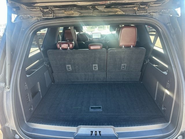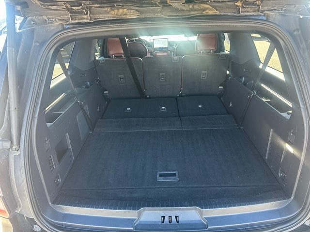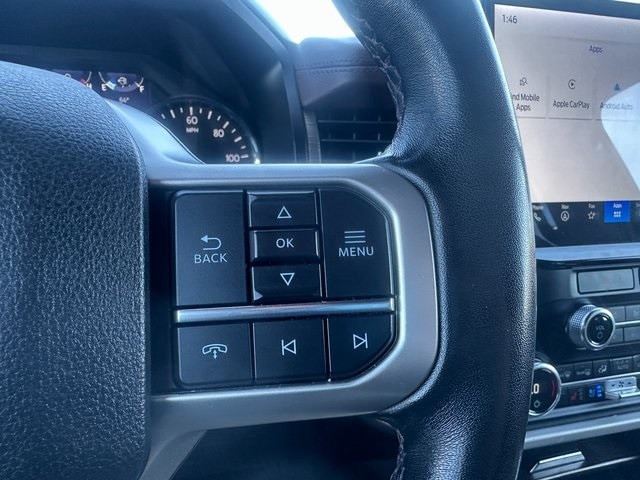 NON SMOKER, REAR CAMERA, MOONROOF/SUNROOF, APPLE CARPLAY/ANDROID AUTO, BLUETOOTH, 12 Speakers, 2nd Row Power-Folding 40/20/40 Leather Bench Seat, 3.31 Axle Ratio, 3rd row seats: split-bench, 4-Wheel Disc Brakes, ABS brakes, Adjustable pedals, Air Conditioning, Alloy wheels, AM/FM radio: SiriusXM with 360L, Auto High-beam Headlights, Auto Start-Stop Removal (DISC), Auto-dimming door mirrors, Auto-dimming Rear-View mirror, Automatic temperature control, Brake assist, Bumpers: body-color, Compass, Delay-off headlights, Driver door bin, Driver vanity mirror, Dual front impact airbags, Dual front side impact airbags, Electronic Stability Control, Emergency communication system: SYNC 4 911 Assist, Equipment Group 301A Mid Package, Exterior Parking Camera Rear, Four wheel independent suspension, Front anti-roll bar, Front Bucket Seats, Front Center Armrest, Front dual zone A/C, Front fog lights, Front License Plate Bracket, Front reading lights, Fully automatic headlights, Garage door transmitter, Heated & Ventilated Leather Front Captain's Chairs, Heated door mirrors, Heated front seats, Heated rear seats, Heated steering wheel, Illuminated entry, Leather steering wheel, Low tire pressure warning, Memory seat, Navigation system: Connected Navigation, Occupant sensing airbag, Outside temperature display, Overhead airbag, Overhead console, Panic alarm, Passenger door bin, Passenger vanity mirror, Pedal memory, Power door mirrors, Power driver seat, Power Liftgate, Power moonroof, Power passenger seat, Power steering, Power windows, Radio data system, Radio: B&O Sound System by Bang & Olufsen, Rain sensing wipers, Rear air conditioning, Rear anti-roll bar, Rear reading lights, Rear window defroster, Rear window wiper, Reclining 3rd row seat, Remote keyless entry, Second Row Power Windows Removal, Security system, SiriusXM w/360L, Speed control, Speed-sensing steering, Speed-Sensitive Wipers, Split folding rear seat, Spoiler, Steering wheel memory, Steering wheel mounted audio controls, SYNC 4 w/Enhanced Voice Recognition, Tachometer, Telescoping steering wheel, Tilt steering wheel, Traction control, Trip computer, Turn signal indicator mirrors, Variably intermittent wipers, Ventilated front seats, Voltmeter, Wheels: 20" Bright Machined Aluminum. Black Metallic EcoBoost 3.5L V6 GTDi DOHC 24V Twin Turbocharged 10-Speed Automatic 4WD