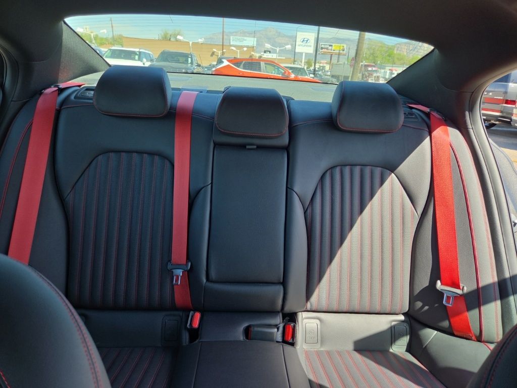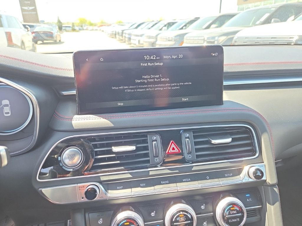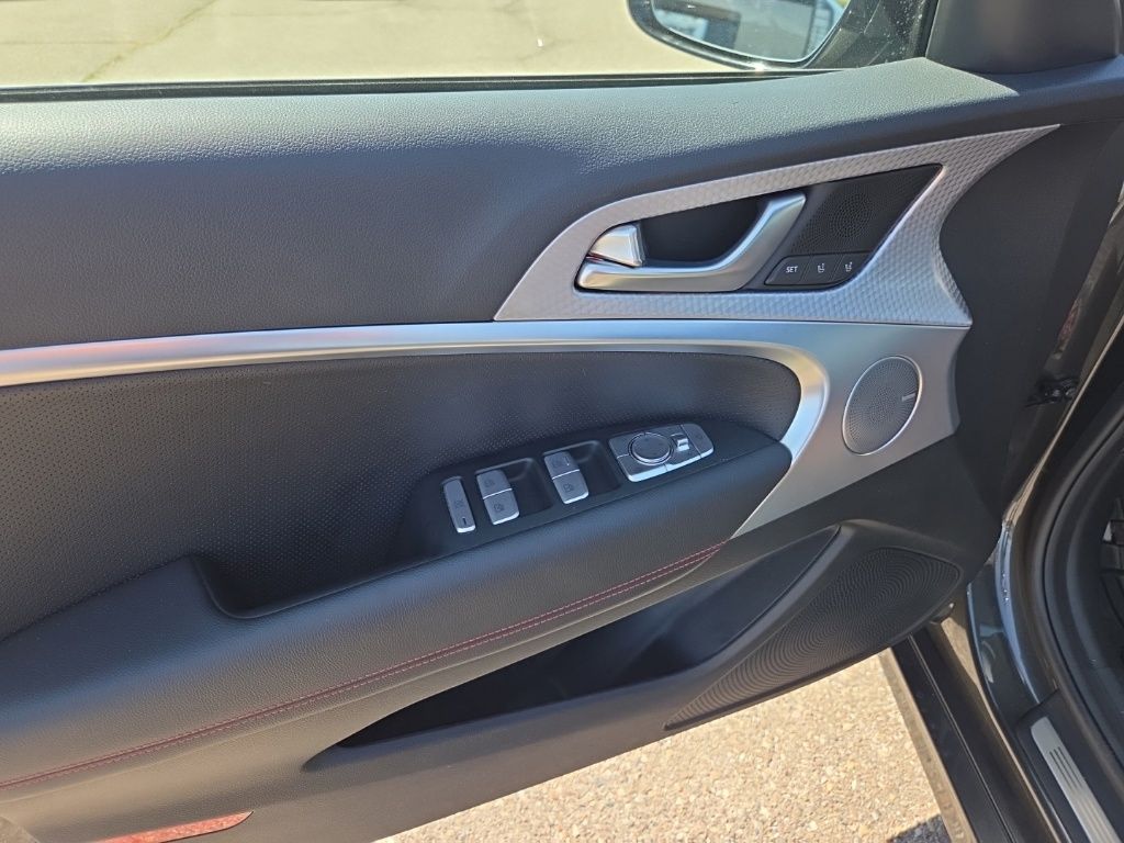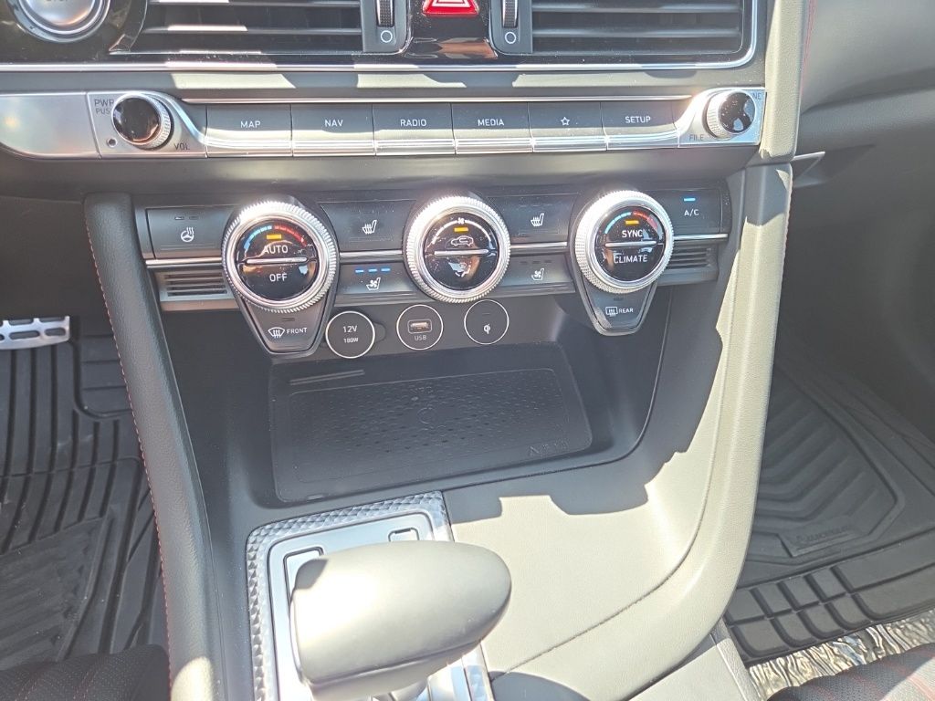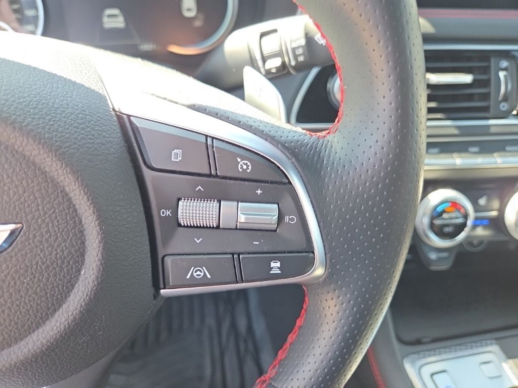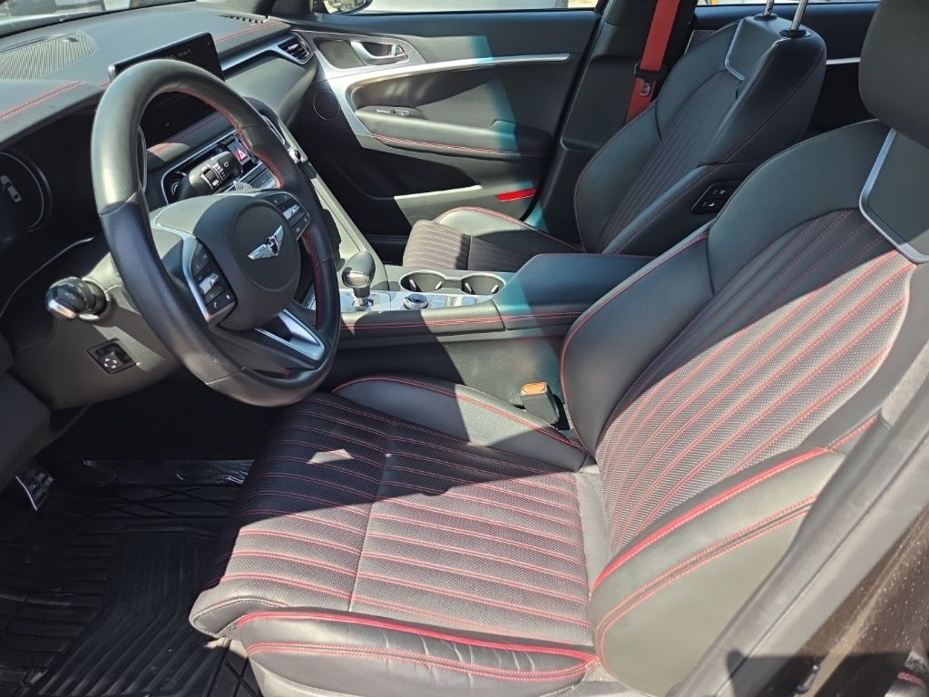 Sport Advanced Package (Acoustic Front Door Glass, Alloy Pedals, Dark Chrome Grille & Daylight Opening Trim, Forward & Reverse Parking Distance Warning, Genesis Digital Key, Option Group 03, Power Driver Seat Bolster & Cushion Extension, Radio: AM/FM/SiriusXM/HD Lexicon Prem Audio System, Sport Aluminum Trim, Variable Exhaust Valve System, Ventilated Front Seats, Wheels: 19" x 8.0J Fr & 19" x 8.5J Rr Sport Alloy, Wide Sunroof, and Wireless Device Charging), 4-Wheel Disc Brakes, 6 Speakers, ABS brakes, Air Conditioning, Alloy wheels, AM/FM radio: SiriusXM, Android Auto & Apple CarPlay, Anti-whiplash front head restraints, Auto High-beam Headlights, Auto-dimming door mirrors, Auto-dimming Rear-View mirror, Automatic temperature control, Brake assist, Bumpers: body-color, Delay-off headlights, Driver door bin, Driver vanity mirror, Dual front impact airbags, Dual front side impact airbags, Electronic Stability Control, Emergency communication system: Genesis Connected Services, Exterior Parking Camera Rear, Four wheel independent suspension, Front anti-roll bar, Front Bucket Seats, Front Center Armrest, Front dual zone A/C, Front reading lights, Fully automatic headlights, Garage door transmitter: HomeLink, Heated door mirrors, Heated front seats, Heated Multi-Adjustable Front Bucket Seats, Heated steering wheel, Illuminated entry, Knee airbag, Leather Seating Surfaces, Low tire pressure warning, Memory seat, Navigation System, Occupant sensing airbag, Outside temperature display, Overhead airbag, Overhead console, Panic alarm, Passenger door bin, Passenger vanity mirror, Power door mirrors, Power driver seat, Power passenger seat, Power steering, Power windows, Radio: AM/FM/SiriusXM/HD Audio System, Rain sensing wipers, Rear anti-roll bar, Rear reading lights, Rear seat center armrest, Rear window defroster, Remote keyless entry, Security system, Speed control, Speed-sensing steering, Speed-Sensitive Wipers, Split folding rear seat, Steering wheel memory, Steering wheel mounted audio controls, Tachometer, Telescoping steering wheel, Traction control, Trip computer, Turn signal indicator mirrors, Variably intermittent wipers, and Wheels: 19" x 8.0J Fr & 19" x 8.5J Rr Alloy.