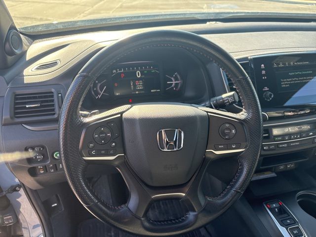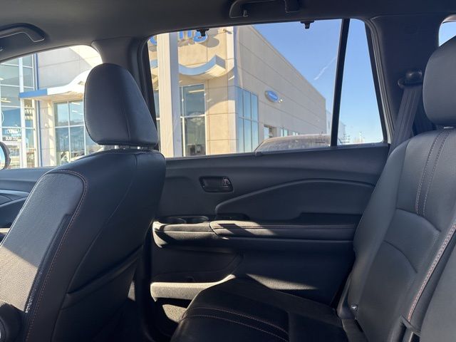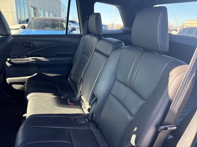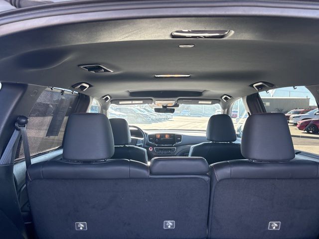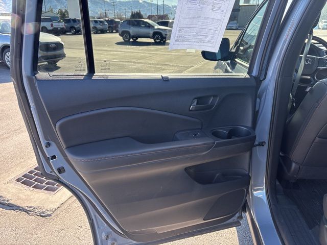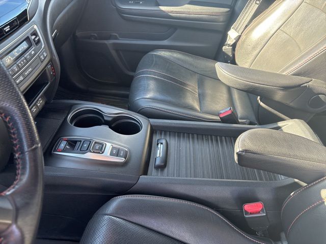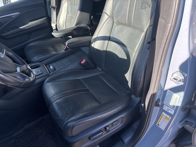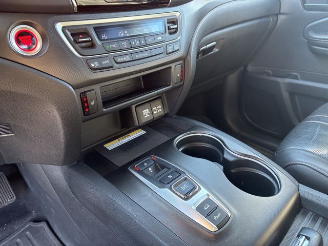 4-Wheel Disc Brakes, 4.334 Axle Ratio, 7 Speakers, A/V remote: CabinControl, ABS brakes, Air Conditioning, Alloy wheels, AM/FM radio: SiriusXM, Apple CarPlay/Android Auto, Auto High-beam Headlights, Auto-dimming Rear-View mirror, Automatic temperature control, Blind Spot Information (BSI) System warning, Brake assist, Bumpers: body-color, Compass, Delay-off headlights, Driver door bin, Driver vanity mirror, Driver's Seat Mounted Armrest, Dual front impact airbags, Dual front side impact airbags, Electronic Stability Control, Emergency communication system: HondaLink Assist, Exterior Parking Camera Rear, Four wheel independent suspension, Front anti-roll bar, Front Bucket Seats, Front Center Armrest, Front dual zone A/C, Front fog lights, Front reading lights, Fully automatic headlights, Garage door transmitter: HomeLink, Heated door mirrors, Heated Front Bucket Seats, Heated front seats, Illuminated entry, Lane departure: Lane Keeping Assist System (LKAS) active, Leather-Trimmed Seats, Low tire pressure warning, Navigation system: Honda Satellite-Linked Navigation System, Occupant sensing airbag, Outside temperature display, Overhead airbag, Overhead console, Panic alarm, Passenger door bin, Passenger seat mounted armrest, Passenger vanity mirror, Power door mirrors, Power driver seat, Power Liftgate, Power moonroof, Power passenger seat, Power steering, Power windows, Radio data system, Radio: 215-Watt Audio System w/7 Speakers, Rear air conditioning, Rear anti-roll bar, Rear reading lights, Rear seat center armrest, Rear window defroster, Rear window wiper, Remote keyless entry, Roof Rack, Security system, Speed control, Speed-sensing steering, Split folding rear seat, Spoiler, Steering wheel mounted audio controls, Tachometer, Telescoping steering wheel, Tilt steering wheel, Traction control, Trip computer, Turn signal indicator mirrors, Variably intermittent wipers, and Wheels: 18" Machine-Finish Alloy.