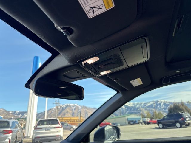4-Wheel Disc Brakes, 8 Speakers, ABS brakes, Adaptive Cruise Control: Adaptive Cruise Control (ACC) with Low-Speed Follow, Air Conditioning, Alloy wheels, AM/FM radio, Apple CarPlay/Android Auto, Auto High-beam Headlights, Automatic temperature control, Blind Spot Information (BSI) System warning, Brake assist, Bumpers: body-color, Cloth Seat Trim, Compass, Delay-off headlights, Driver door bin, Driver vanity mirror, Dual front impact airbags, Dual front side impact airbags, Electronic Stability Control, Exterior Parking Camera Rear, Four wheel independent suspension, Front anti-roll bar, Front Bucket Seats, Front Center Armrest, Front dual zone A/C, Front reading lights, Fully automatic headlights, Heated door mirrors, Heated Front Bucket Seats, Heated front seats, Heated steering wheel, Illuminated entry, Knee airbag, Leather Shift Knob, Leather steering wheel, Low tire pressure warning, Occupant sensing airbag, Outside temperature display, Overhead airbag, Overhead console, Panic alarm, Passenger door bin, Passenger vanity mirror, Power door mirrors, Power driver seat, Power moonroof, Power steering, Power windows, Radio data system, Radio: 320-Watt AM/FM Audio System, Rear anti-roll bar, Rear reading lights, Rear seat center armrest, Rear side impact airbag, Rear window defroster, Rear window wiper, Remote keyless entry, Security system, Speed control, Speed-sensing steering, Speed-Sensitive Wipers, Split folding rear seat, Spoiler, Steering wheel mounted audio controls, Telescoping steering wheel, Tilt steering wheel, Traction control, Trip computer, Turn signal indicator mirrors, Variably intermittent wipers, and Wheels: 18" Shark Grey.