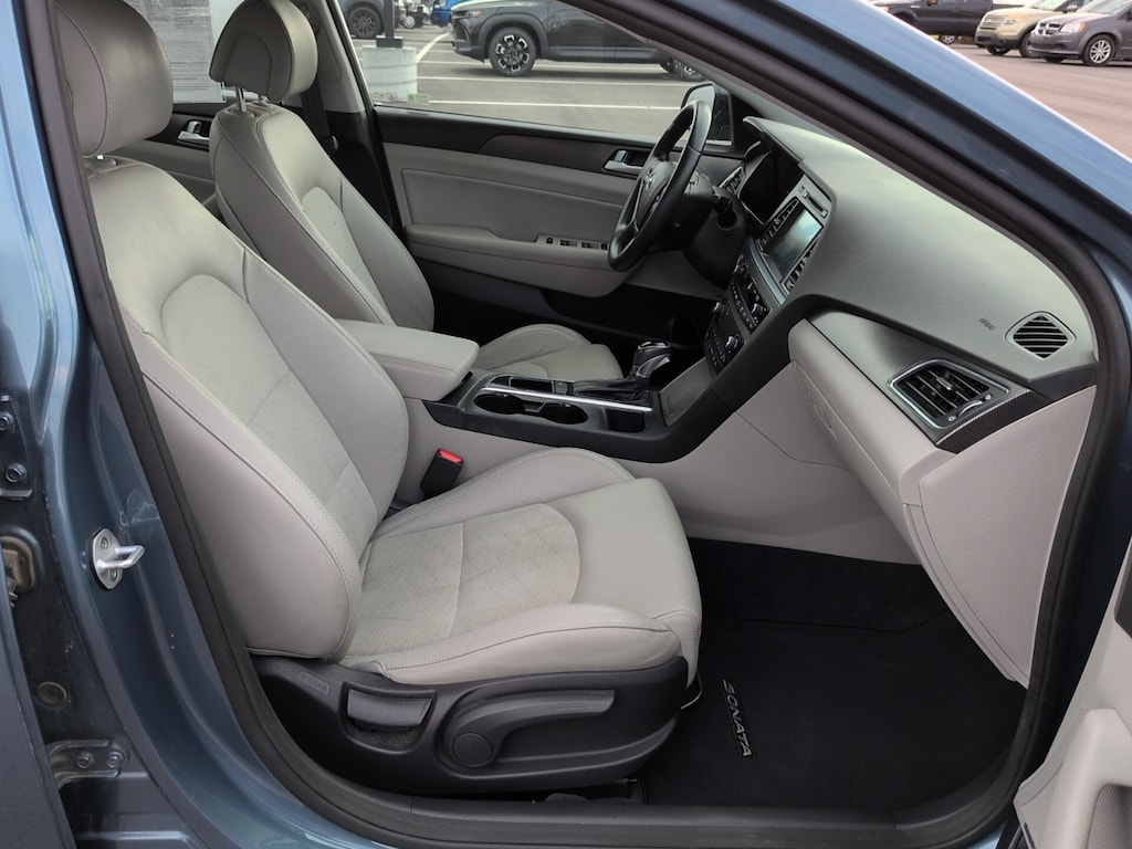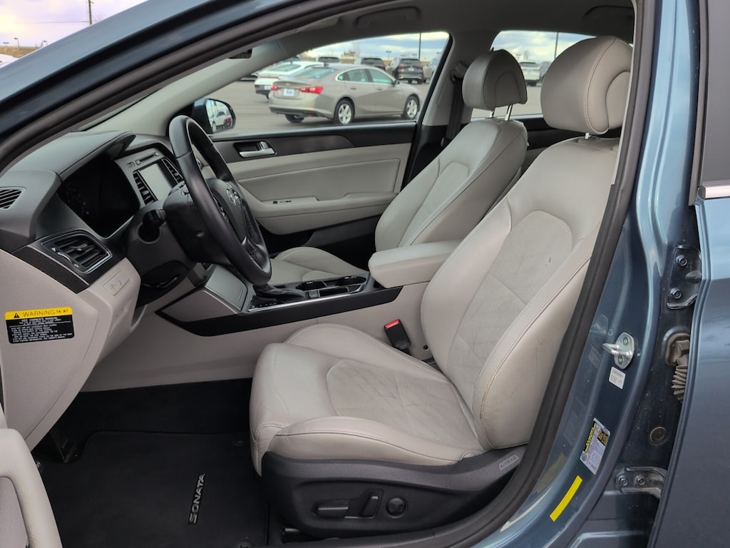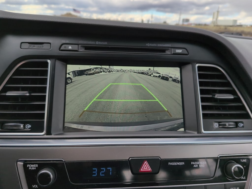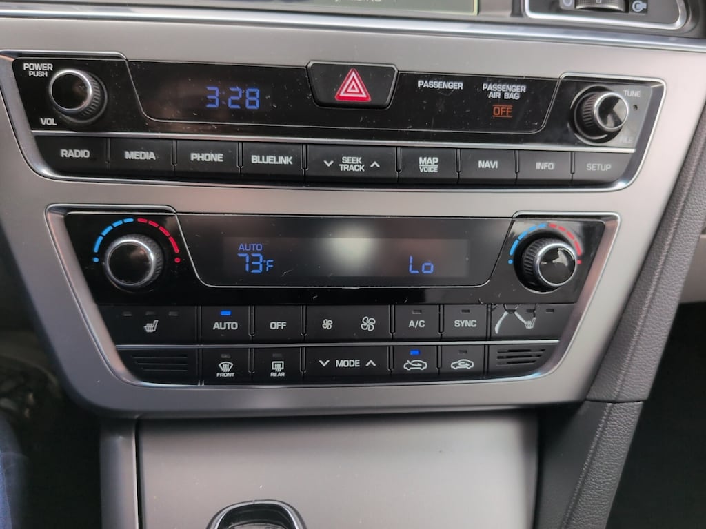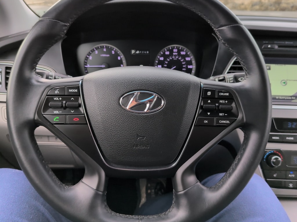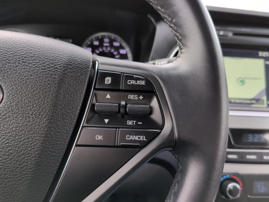 4-Wheel Disc Brakes, ABS brakes, Anti-whiplash front head restraints, Dual front impact airbags, Dual front side impact airbags, Electronic Stability Control, Emergency communication system: Blue Link, Exterior Parking Camera Rear, Four wheel independent suspension, Front anti-roll bar, Fully automatic headlights, Heated door mirrors, Heated front seats, Illuminated entry, Knee airbag, Leather Bolster/Cloth Insert Seating Surfaces, Low tire pressure warning, Occupant sensing airbag, Overhead airbag, Power driver seat, Rear anti-roll bar, Remote keyless entry, Speed control, Steering wheel mounted audio controls, Telescoping steering wheel, Tilt steering wheel, Variably intermittent wipers, Wheels: 17 x 7.0J Aluminum Alloy.