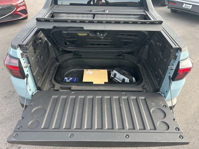 Option Group 01, 18" x 7.5J Alloy Wheels, 4-Wheel Disc Brakes, 4.081 Axle Ratio, 6 Speakers, ABS brakes, Air Conditioning, All Season Fitted Liners, Alloy wheels, AM/FM radio: SiriusXM, Apple CarPlay & Android Auto, Auto High-beam Headlights, Auto-leveling suspension, Automatic temperature control, Brake assist, Bumpers: body-color, Cargo Net, Compass, Cross Rails, Delay-off headlights, Driver door bin, Driver vanity mirror, Dual front impact airbags, Dual front side impact airbags, Electronic Stability Control, Emergency communication system: Bluelink+, Exterior Parking Camera Rear, Four wheel independent suspension, Front anti-roll bar, Front Bucket Seats, Front Center Armrest, Front dual zone A/C, Front reading lights, Fully automatic headlights, H-Tex Leatherette Seat Trim, Heated door mirrors, Heated Front Bucket Seats, Heated front seats, Illuminated entry, Low tire pressure warning, Mud Guards, Occupant sensing airbag, Outside temperature display, Overhead airbag, Overhead console, Panic alarm, Passenger door bin, Passenger vanity mirror, Power door mirrors, Power driver seat, Power moonroof, Power steering, Power windows, Radio data system, Radio: AM/FM/HD Audio System, Rear anti-roll bar, Rear reading lights, Rear seat center armrest, Rear side impact airbag, Rear step bumper, Rear window defroster, Remote keyless entry, Roadside Assistance Kit, Security system, Speed control, Speed-sensing steering, Split folding rear seat, Spoiler, Steering wheel mounted audio controls, Tachometer, Telescoping steering wheel, Tilt steering wheel, Traction control, Trip computer, Turn signal indicator mirrors, Variably intermittent wipers, and Wheel Locks.