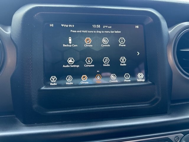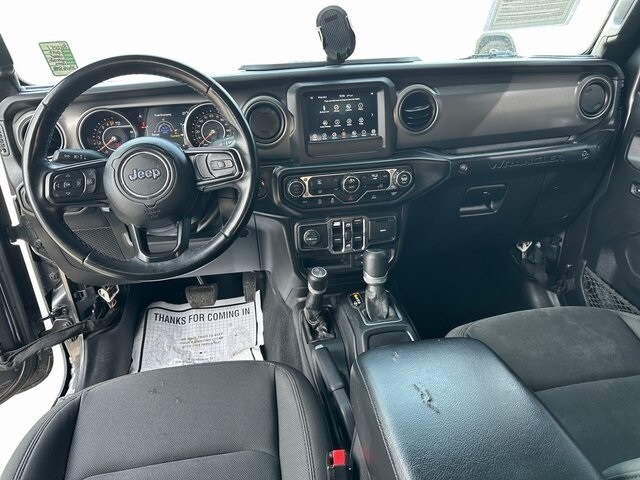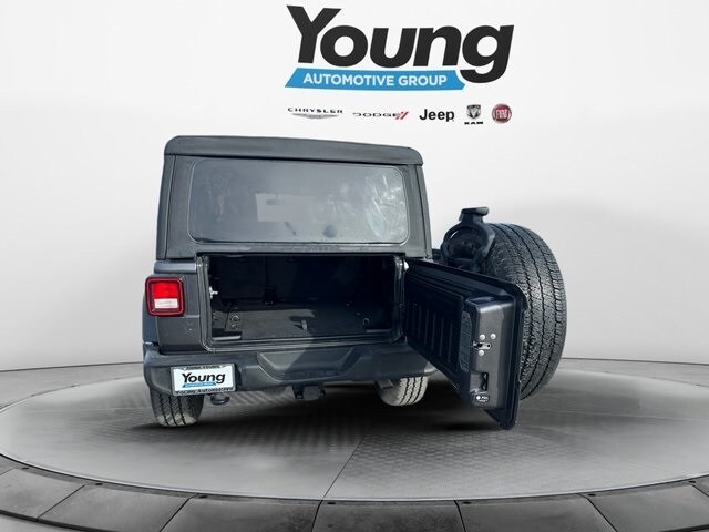 NON SMOKER, REAR CAMERA, APPLE CARPLAY/ANDROID AUTO, BLUETOOTH, 110 MPH Vehicle Max Speed Calibration, 2-Door Passive Entry, Front Door Locks, 240 Amp Alternator, 3.45 Rear Axle Ratio, 4-Wheel Disc Brakes, 7 & 4 Pin Wiring Harness, 700 Amp Maintenance Free Battery, 8 Speakers, ABS brakes, Air Conditioning, Air Conditioning w/Auto Temperature Control, Air Filtering, AM/FM radio, Apple CarPlay/Android Auto, Automatic Headlamps, Aux Battery, Auxiliary Switches, Brake assist, Class II Receiver Hitch, Cloth Low-Back Bucket Seats, Cluster 7.0" TFT Color Display, Compass, Convenience Group, Deep Tint Sunscreen Windows, Delay-off headlights, Driver door bin, Driver vanity mirror, Dual front impact airbags, Dual front side impact airbags, Electronic Stability Control, Emergency communication system: SiriusXM Guardian, Engine Oil Cooler, Front 1-Touch Down Power Windows, Front anti-roll bar, Front Bucket Seats, Front Center Armrest w/Storage, Front fog lights, Front reading lights, Integrated roll-over protection, Jeep Trail Rated Kit, Leather Wrapped Steering Wheel, Low tire pressure warning, Non-Lock Fuel Cap w/o Discriminator, Normal Duty Suspension, Occupant sensing airbag, Outside temperature display, ParkView Rear Back-Up Camera, Passenger door bin, Passenger vanity mirror, Power Heated Mirrors, Power steering, Quick Order Package 24S Sport S, Radio data system, Radio: Uconnect 4 w/7" Display, Rear anti-roll bar, Rear reading lights, Remote Keyless Entry, Security Alarm, SiriusXM Radio Service, SiriusXM Satellite Radio, Soft Top Window Storage Bag, Speed control, Speed Sensitive Power Locks, Split folding rear seat, Sport S, Steering wheel mounted audio controls, Stop-Start Dual Battery System, Sun Visors w/Illuminated Vanity Mirrors, Tachometer, Technology Group, Telescoping steering wheel, Tilt steering wheel, Traction control, Trailer Tow & HD Electrical Group, Trip computer, Universal Garage Door Opener, Variably intermittent wipers, Wheels: 17" x 7.5" Black Steel Styled, Wheels: 17" x 7.5" Tech Silver Aluminum. Granite Crystal Metallic Clearcoat 3.6L V6 24V VVT 8-Speed Automatic 4WD