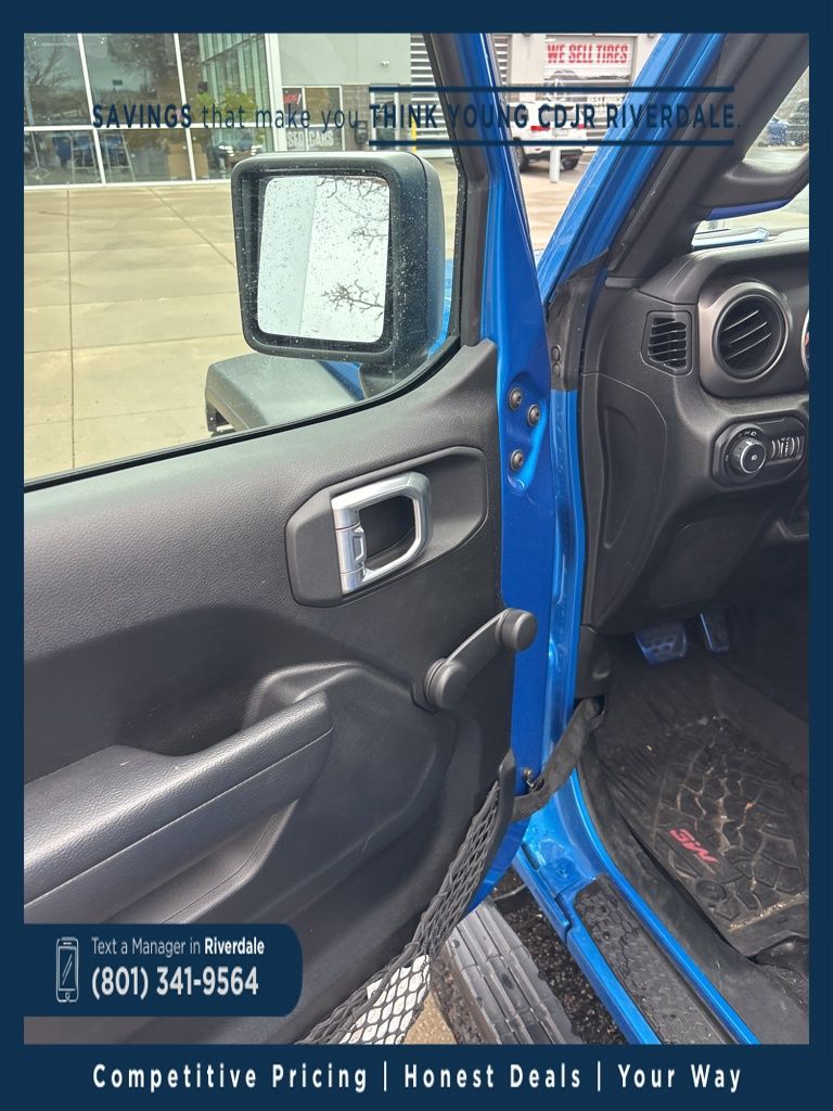 The 2022 Jeep Wrangler Unlimited Sport is a rugged and versatile four-door SUV that combines legendary off-road capability with everyday usability. With its classic 4Ã4 performance, removable top and doors, and confident traction in varied terrain and weather, itâs ready for trails, beach days, or daily driving alike. The Unlimited Sport offers a functional, well-designed interior with modern tech and thoughtful convenience features that make every ride comfortable and enjoyable. Whether youâre navigating city streets or exploring backcountry paths, this Wrangler Unlimited Sport delivers adventure-ready capability, iconic Jeep style, and dependable performance you can count on.