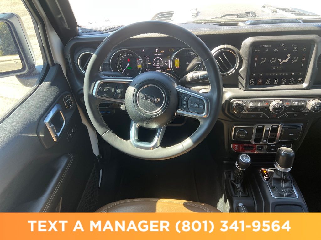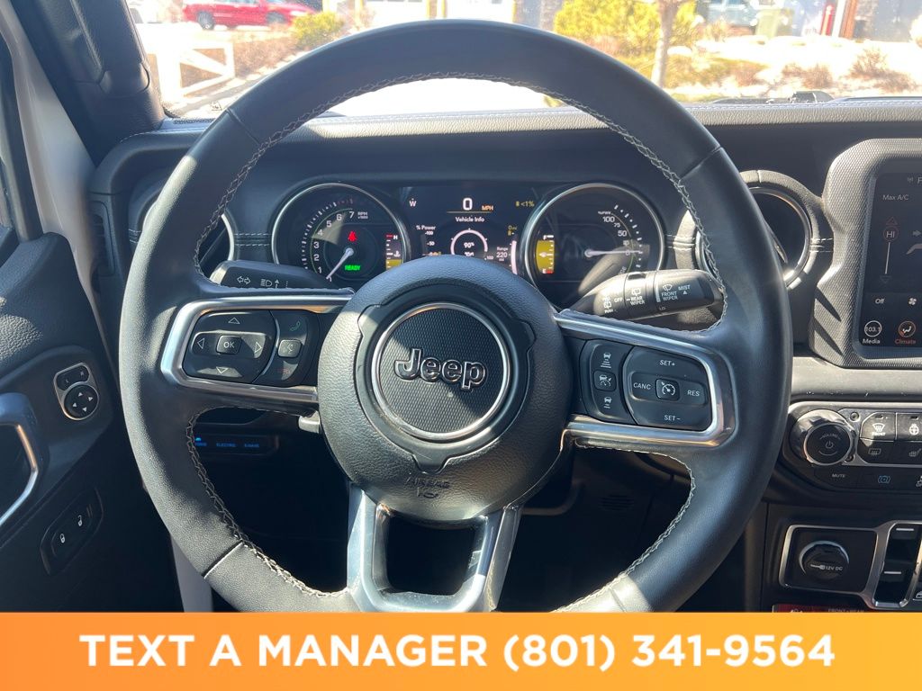4WD ABS brakes, Alloy wheels, Compass, Electronic Stability Control, Front dual zone A/C, Heated door mirrors, Illuminated entry, Low tire pressure warning, Navigation System, ParkView Rear Back-Up Camera, Passenger door bin, Remote keyless entry, Traction control. Rubicon 20th Anniversary Edition 4xe Bright White Clearcoat 2.0L I4 DOHC 8-Speed Automatic