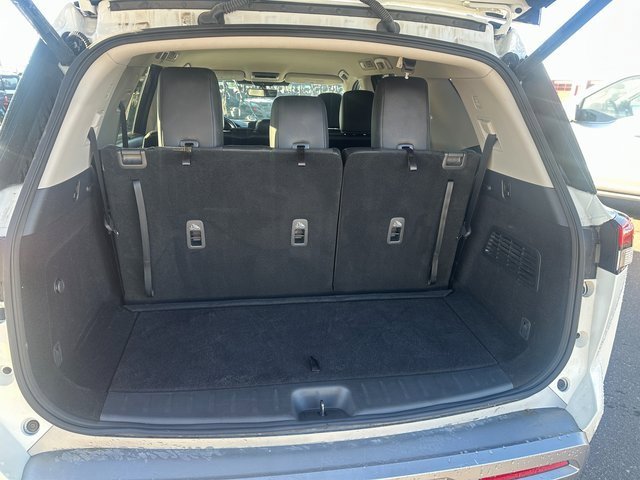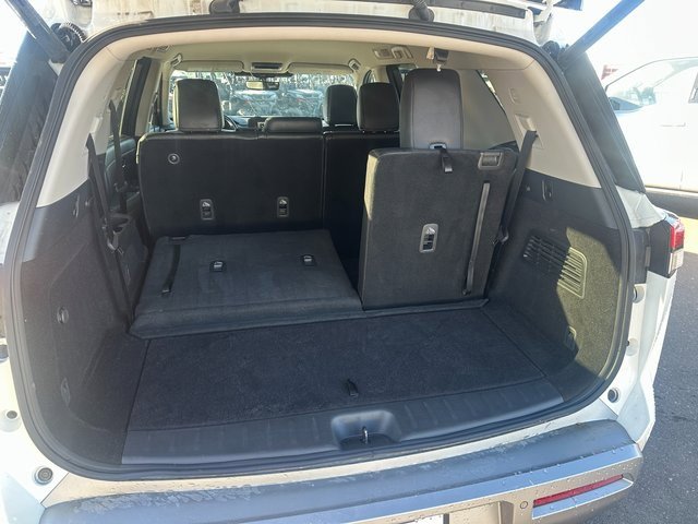 21/27 City/Highway MPG BLUETOOTH, BACK UP CAMERA, APPLE CARPLAY/ANDROID AUTO, 4WD, 3rd row seats: bench, 4-Wheel Disc Brakes, 6 Speakers, ABS brakes, Air Conditioning, Alloy wheels, AM/FM radio: SiriusXM, Auto High-beam Headlights, Auto-dimming Rear-View mirror, Automatic temperature control, Axle Ratio: 4.334, Bench Seat Carpeted Floor Mats (Set of 4), Black Splash Guards (Set of 4), Brake assist, Bumpers: body-color, Delay-off headlights, Driver door bin, Driver vanity mirror, Dual front impact airbags, Dual front side impact airbags, Electronic Stability Control, Emergency communication system, Exterior Parking Camera Rear, Four wheel independent suspension, Front anti-roll bar, Front Bucket Seats, Front Center Armrest, Front dual zone A/C, Front reading lights, Fully automatic headlights, Garage door transmitter: HomeLink, Heated door mirrors, Heated Front Bucket Seats, Heated front seats, Heated steering wheel, Illuminated entry, Knee airbag, Leather steering wheel, Leather-Appointed Seating Surfaces, Low tire pressure warning, Navigation system: NissanConnect with Navigation and Services, NissanConnect featuring Apple CarPlay and Android Auto, NissanConnect w/Navigation & Services, Occupant sensing airbag, Outside temperature display, Overhead airbag, Overhead console, Panic alarm, Passenger door bin, Passenger vanity mirror, Power door mirrors, Power driver seat, Power Liftgate, Power passenger seat, Power steering, Power windows, Radio data system, Radio: AM/FM Audio System, Rear air conditioning, Rear anti-roll bar, Rear reading lights, Rear seat center armrest, Rear side impact airbag, Rear window defroster, Rear window wiper, Reclining 3rd row seat, Remote keyless entry, Security system, Speed control, Speed-sensing steering, Split folding rear seat, Spoiler, Steering wheel mounted audio controls, Tachometer, Telescoping steering wheel, Tilt steering wheel, Traction control, Trip computer, Turn signal indicator mirrors, Variably intermittent wipers, Wheels: 18 x 8J Machined Alloy. Pearl White Tricoat 3.5L V6 DOHC 9-Speed Automatic 4WD