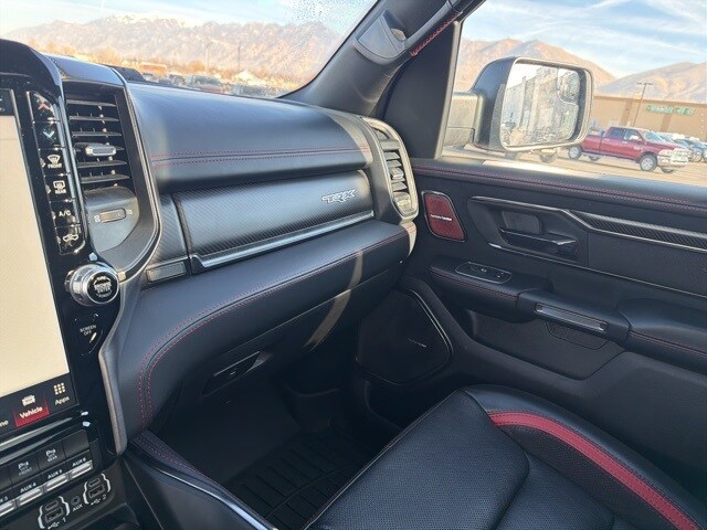 Leather/Carbon Flat-Bottom Steering Wheel, Real Carbon Fiber Interior Accents, TRX Carbon Fiber Package. TRX Diamond Black Crystal Pearlcoat 6.2L Supercharged HEMI V8 SRT 8-Speed Automatic 4WD Odometer is 958 miles below market average!