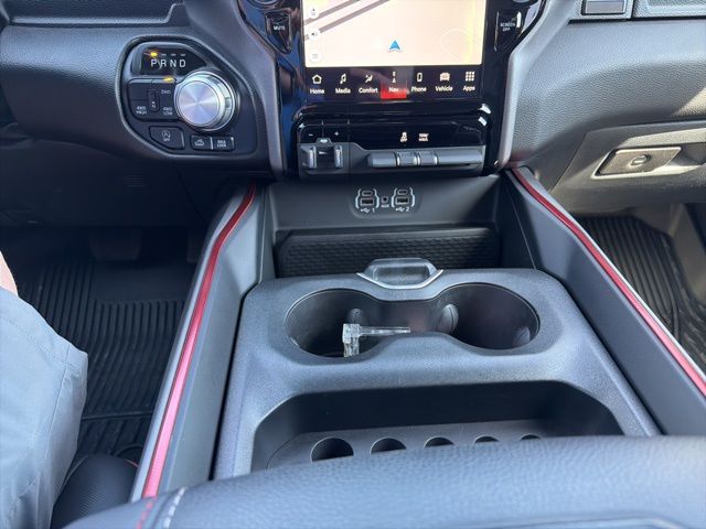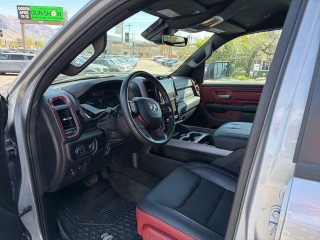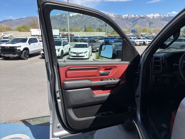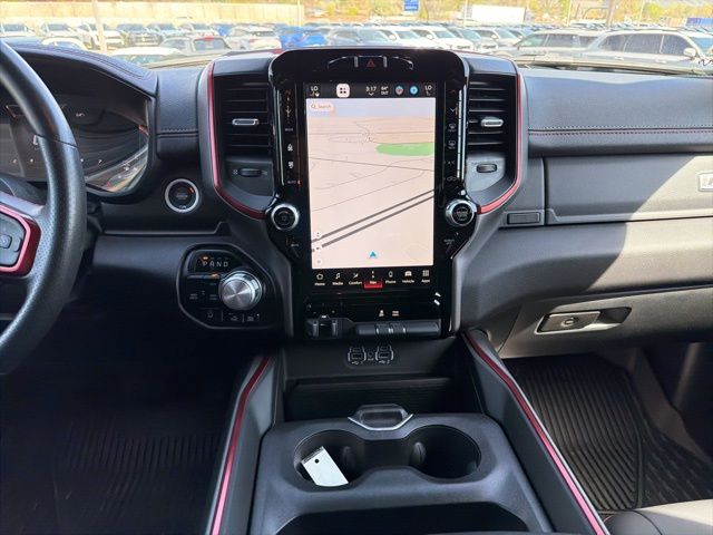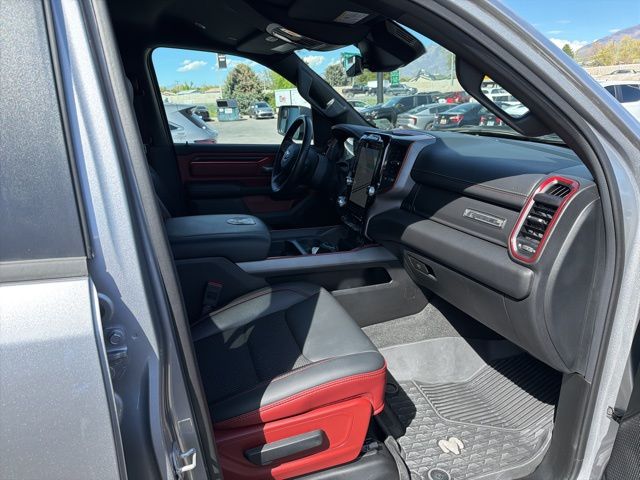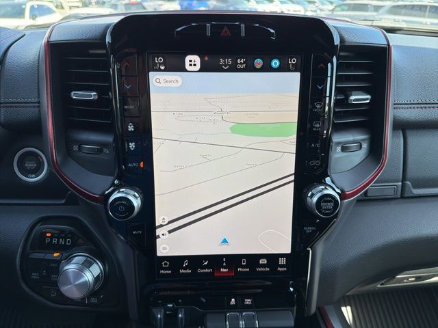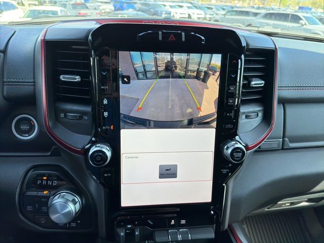 Inside, the 2023 Rebel blends durability with comfort. The cabin features premium cloth and vinyl seating, a leather wrapped steering wheel, and a driver focused layout designed for convenience. The standard Uconnect touchscreen with Apple CarPlay and Android Auto ensures seamless connectivity, while available upgrades like the 12-inch display enhance navigation and entertainment options. Advanced safety features including Blind Spot Monitoring, Adaptive Cruise Control, and Forward Collision Warning provide added confidence on every drive.