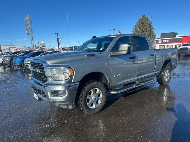 Odometer is 2628 miles below market average! NON SMOKER, REAR CAMERA, APPLE CARPLAY/ANDROID AUTO, BLUETOOTH, 2 Way Rear Headrest Seat, 2nd Row In Floor Storage Bins, 3.73 Axle Ratio, 4 Way Front Headrests, 4-Wheel Disc Brakes, 40/20/40 Split Bench Seat, 4G LTE Wi-Fi Hot Spot, 6 Speakers, 8.4" Touchscreen Display, ABS brakes, Active Noise Control System, Air Conditioning, Apple CarPlay, Auto Power-Folding Mirrors, Big Horn IP Badge, Black Exterior Mirrors, Bluetooth Handsfree Phone & Audio, Brake assist, Bumpers: chrome, Center Hub, Center Stack Storage Drawer, Chrome Flat Cab-Length Side Steps, Cloth 40/20/40 Bench Seat, Compass, Connectivity - US/Canada, Delay-off headlights, Driver door bin, Dual front impact airbags, Dual front side impact airbags, Dual Glove Boxes, Electronic Stability Control, Electronically Controlled Throttle, Emergency communication system: SiriusXM Guardian, Exterior Mirrors Courtesy Lamps, Exterior Mirrors w/Heating Element, Exterior Mirrors w/Supplemental Signals, Foam Bottle Insert (Door Trim Panel), Footwell Courtesy Lamp, For Details, Visit DriveUconnect.com, For More Info, Call 800-643-2112, Forward & Reverse Utility Lights, Front anti-roll bar, Front Armrest w/Cupholders, Front Center Armrest w/Storage, Front Center Seat Cushion Storage, Front Fog Lamps, Front License Plate Bracket, Front reading lights, Front Seat Back Map Pockets, Fully automatic headlights, Global Telematics Box Module (TBM), Glove Box Lamp, Google Android Auto, GPS Antenna Input, Heated door mirrors, Illuminated entry, Integrated Center Stack Radio, Integrated Voice Command w/Bluetooth, Leather Wrapped Steering Wheel, Level 1 Equipment Group, Locking Lower Glove Box, Low tire pressure warning, Manual Adjust 4-Way Driver Seat, Manual Adjust 4-Way Front Passenger Seat, Manufacturer's Statement of Origin, Mirror Running Lights, Occupant sensing airbag, Outside temperature display, Overhead airbag, Overhead console, Panic alarm, ParkView Rear Back-Up Camera, Passenger door bin, Passenger vanity mirror, Power 2-Way Driver Lumbar Adjust, Power Adjust 8-Way Driver Seat, Power Adjust Mirrors, Power Adjustable Convex Aux Mirrors, Power door mirrors, Power Heated Fold Telescope Mirrors, Power steering, Power Telescoping Mirrors, Power windows, Premium Cloth 40/20/40 Bench Seat, Premium Cloth 40/20/40 Bench Seat (DISC), Quick Order Package 2HZ Big Horn, Radio data system, Radio: Uconnect 3 w/5" Display, Radio: Uconnect 5 W w/8.4" Display, Radio: Uconnect 5 W w/8.4" Display (A62), Rear 60/40 Folding Seat, Rear anti-roll bar, Rear Dome w/On/Off Switch Lamp, Rear Folding Seat, Rear seat center armrest, Rear step bumper, Remote keyless entry, Remote USB Port - Charge Only, Selectable Tire Fill Alert, SiriusXM Radio Service, SiriusXM Satellite Radio, Speed control, Steering Wheel Mounted Audio Controls, Storage Tray, Tachometer, Tilt steering wheel, Tip Start, Tow Hooks, Traction control, Trip computer, Turn signal indicator mirrors, Variably intermittent wipers, Voltmeter, Wheels: 18" x 8.0" Polished Aluminum, Wheels: 18" x 8.0" Steel Chrome Clad. Billet Silver Metallic Clearcoat Cummins 6.7L I6 Turbodiesel 6-Speed Automatic 4WD