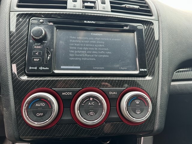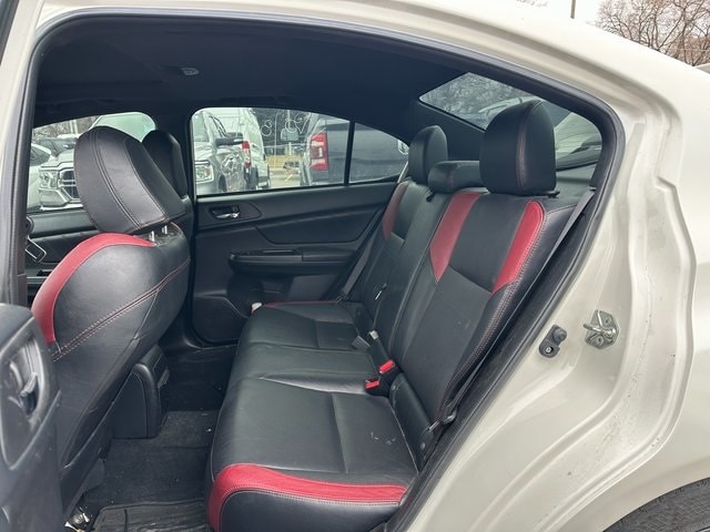 NON SMOKER, 4-Wheel Disc Brakes, 9 Speakers, ABS brakes, Air Conditioning, Alloy wheels, AM/FM radio: SiriusXM, Auto-Dimming Mirror w/Compass & HomeLink, Automatic temperature control, Brake assist, Bumpers: body-color, Cargo Tray, CD player, Delay-off headlights, Driver door bin, Driver vanity mirror, Dual front impact airbags, Dual front side impact airbags, Electronic Stability Control, Exterior Parking Camera Rear, Four wheel independent suspension, Front anti-roll bar, Front Bucket Seats, Front Center Armrest, Front dual zone A/C, Front fog lights, Front reading lights, Fully automatic headlights, harman/kardon® Speakers, Heated door mirrors, Heated front seats, Illuminated entry, Keyless Access & Start, Knee airbag, Leather Shift Knob, Leather Upholstery, Low tire pressure warning, MP3 decoder, Navigation System w/Keyless Access & Start, Occupant sensing airbag, Outside temperature display, Overhead airbag, Panic alarm, Passenger door bin, Passenger vanity mirror, Performance Design Front Heated Bucket Seats, Power door mirrors, Power driver seat, Power moonroof, Power steering, Power windows, Radio data system, Radio: AM/FM/HD/MP3/WMA w/Single-Disc CD Player, Radio: harman kardon Audio System AM/FM/HD/MP3/WMA, Rear anti-roll bar, Rear seat center armrest, Rear window defroster, Red Interior Illumination Kit, Remote keyless entry, Security system, Speed control, Speed-sensing steering, Split folding rear seat, Spoiler, Sport steering wheel, Steering wheel mounted audio controls, STI Short Throw Shifter (STI), Tachometer, Telescoping steering wheel, Tilt steering wheel, Traction control, Trip computer, Turn signal indicator mirrors, Variably intermittent wipers, Wheels: 18" x 8.5J BBS Brand w/High Luster Silver. Crystal White Pearl 2.5L DOHC Intercooled High-Boost DAVCS Close-Ratio 6-Speed Manual AWD