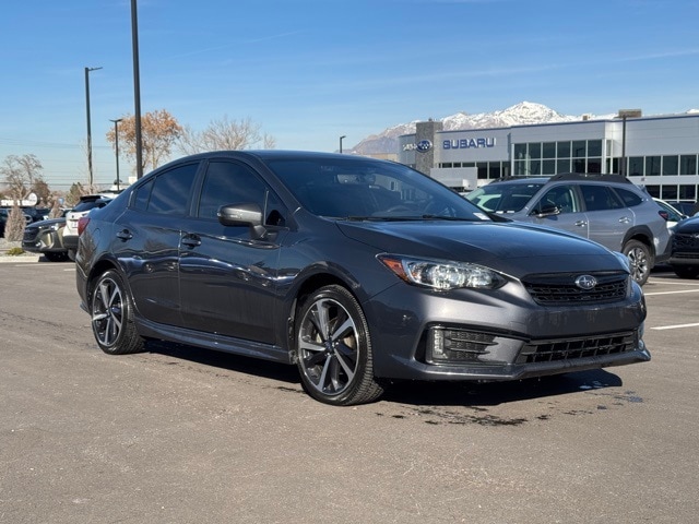 Sharp, sporty, and fun to drive, this 2023 Subaru Impreza Sport Sedan in Magnetite Gray stands out with its bold black-and-red interior. With 47,197 miles, it delivers confident handling, great fuel economy, and Subarus legendary Symmetrical All-Wheel Drive, perfect for Utah roads year-round. The Sport trim adds aggressive styling and upgraded touches that make this Impreza more than just a commuter. Clean, sporty, and ready to go! this one brings style and confidence to every drive.