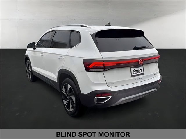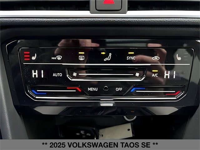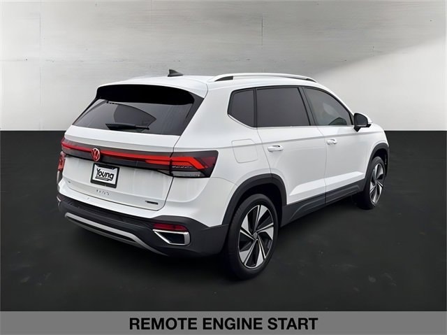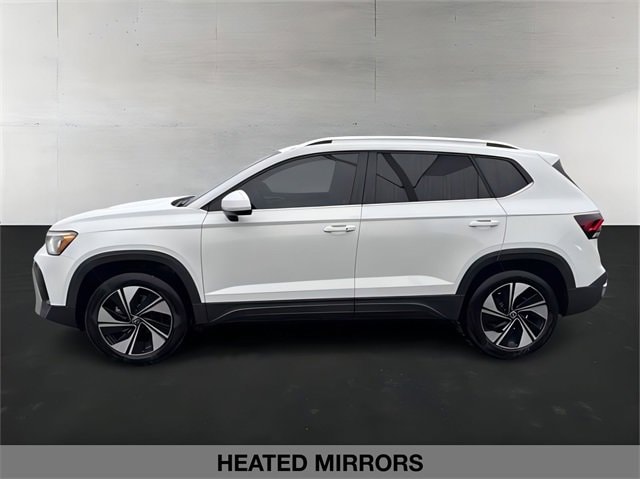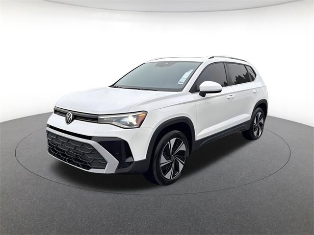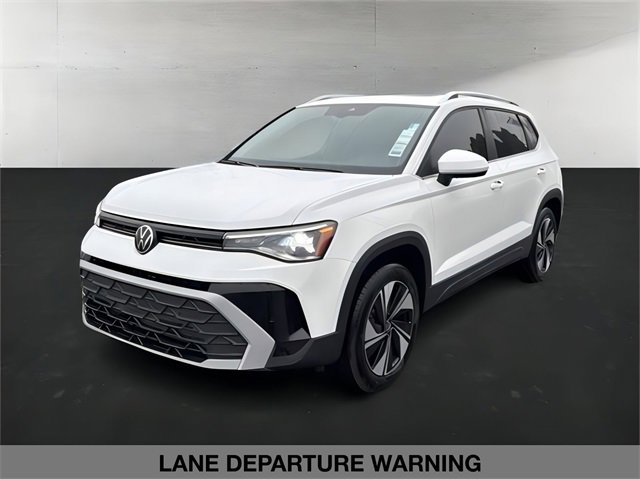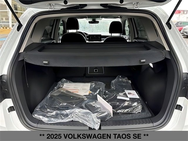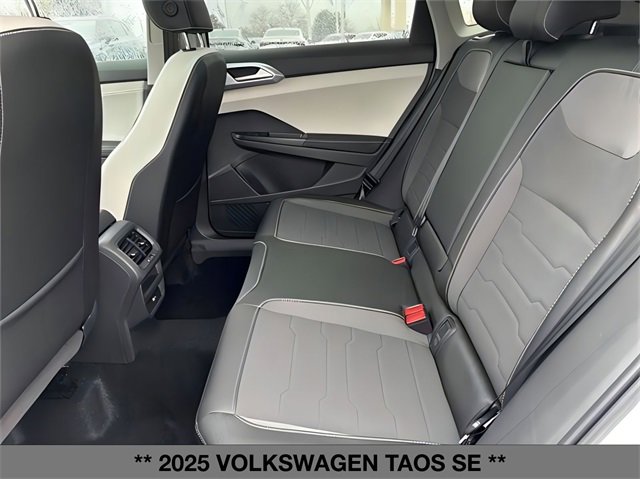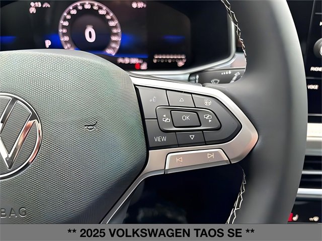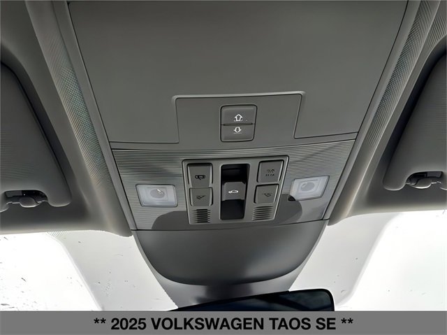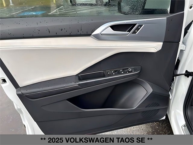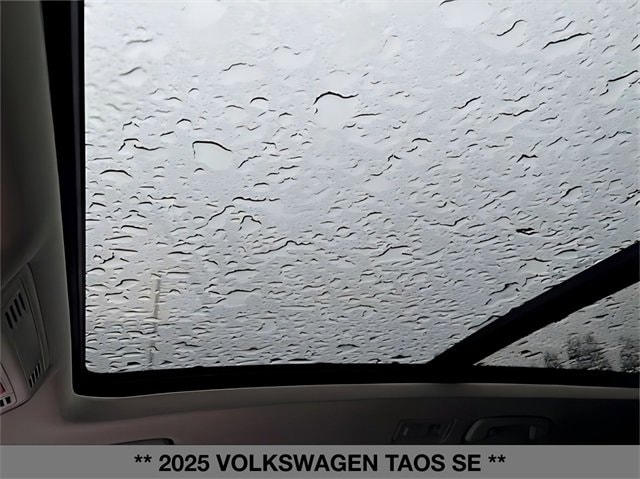 2025 Volkswagen Taos 1.5T SE Pure White 1.5L I4 Turbocharged DOHC 16V LEV3-SULEV30 174hp 8-Speed Automatic with Tiptronic AWD Panoramic Sunroof Package.